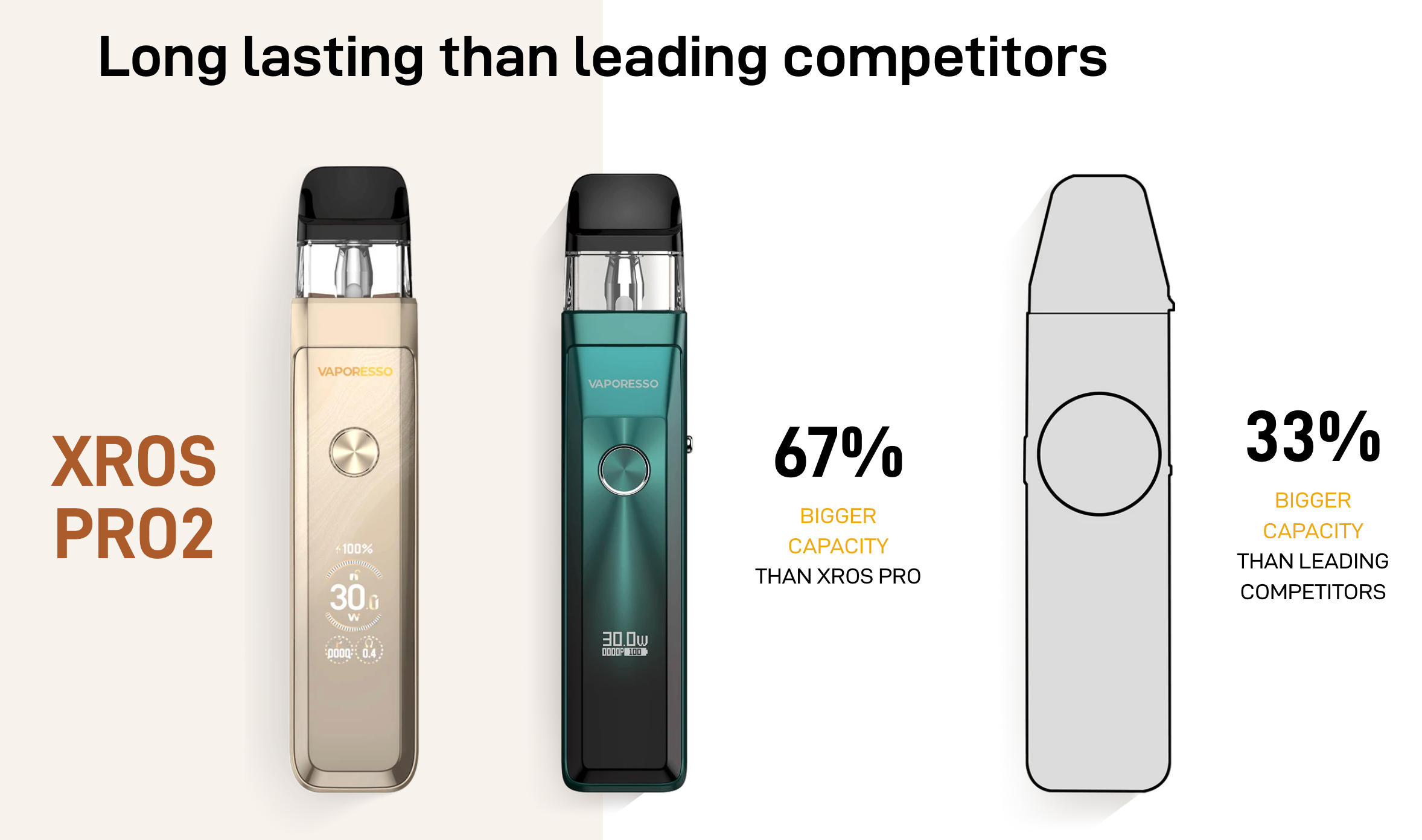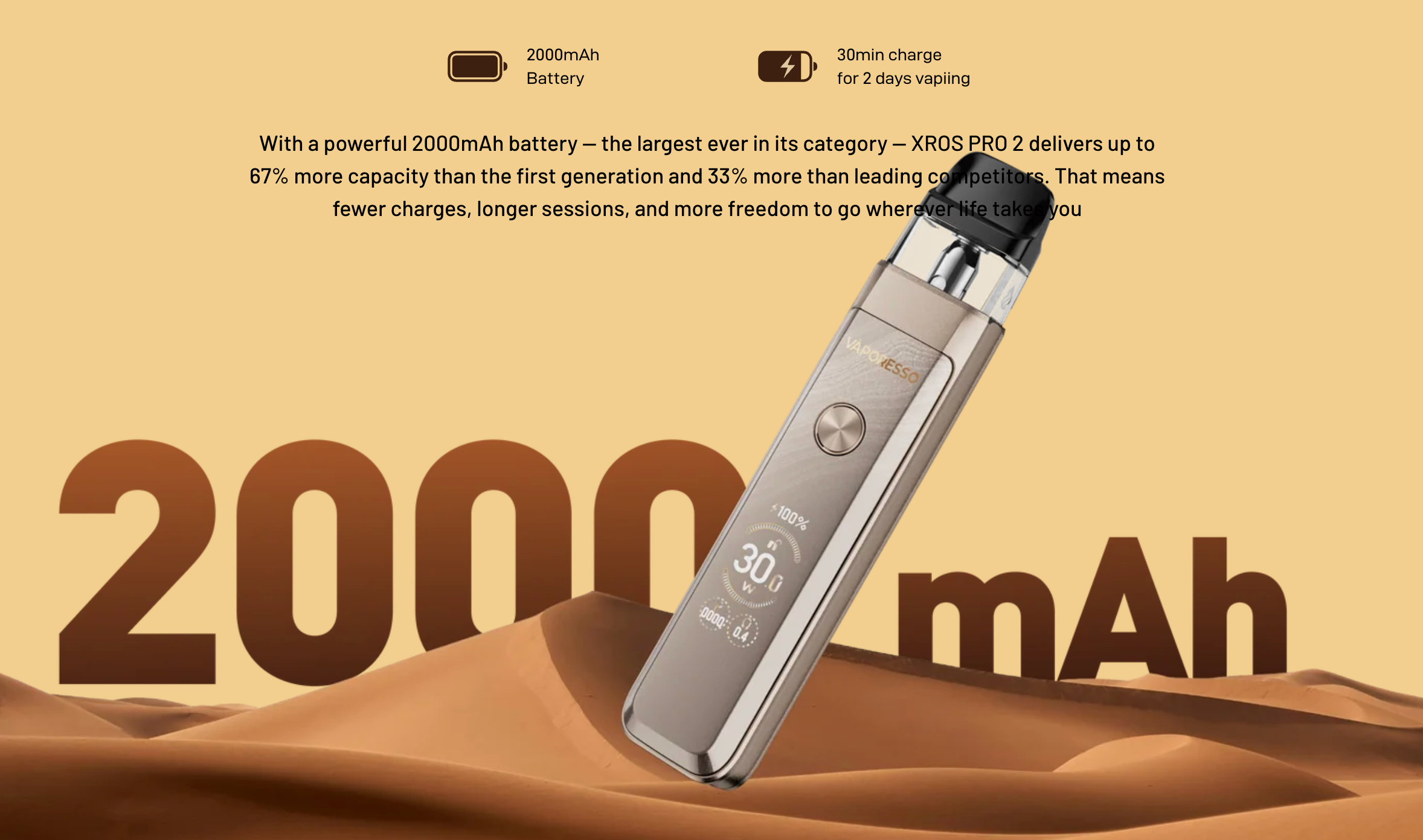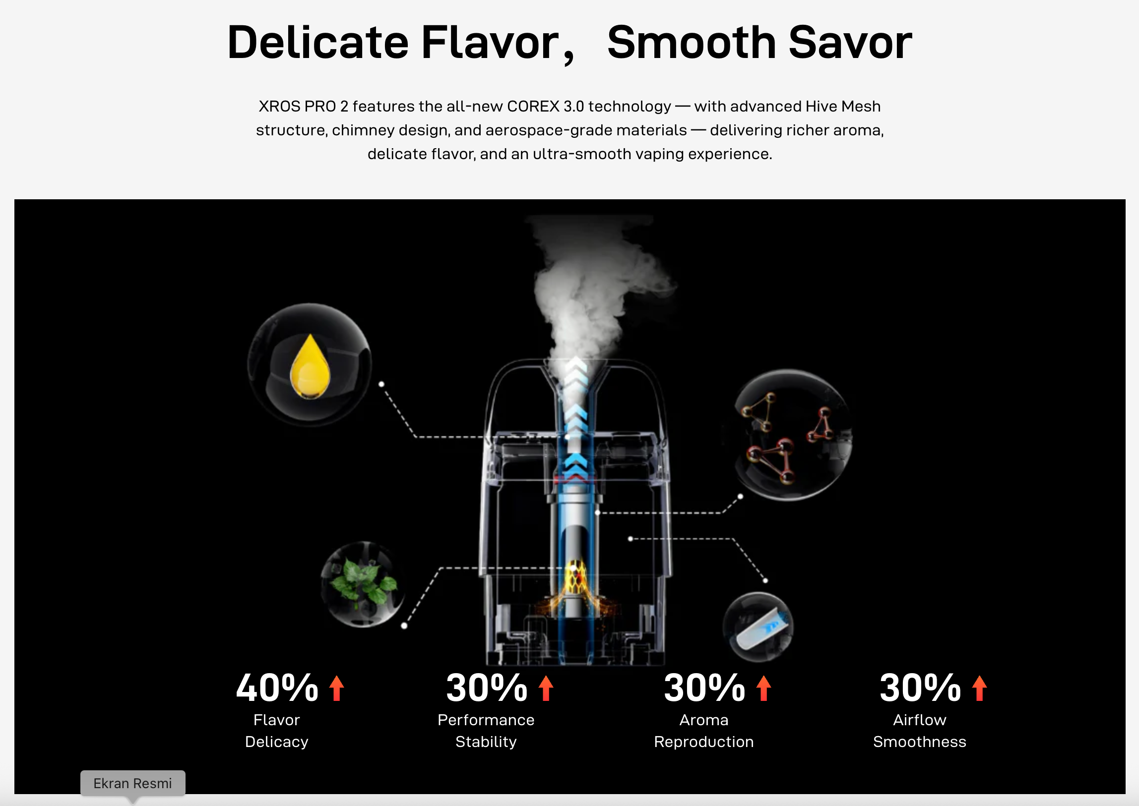 Vaporesso XROS Pro 2; 2000 mAh dahili batarya, 5–30W ayarlanabilir güç, 0,96" TFT ekran ve COREX 3.0 ısıtma mimarisiyle yoğun aroma ve stabil performans sunan gelişmiş bir pod mod kitidir. Üstten dolumlu 3 ml pod yapısı sızıntıyı azaltır; ayarlanabilir hava kanalı MTL’den sıkı RDL’e kadar geniş içim aralığı sağlar. XROS pod platformuyla çapraz uyumluluk sayesinde yedek pod/coil bulunurluğu yüksektir ve uzun dönem kullanım maliyeti düşüktür.